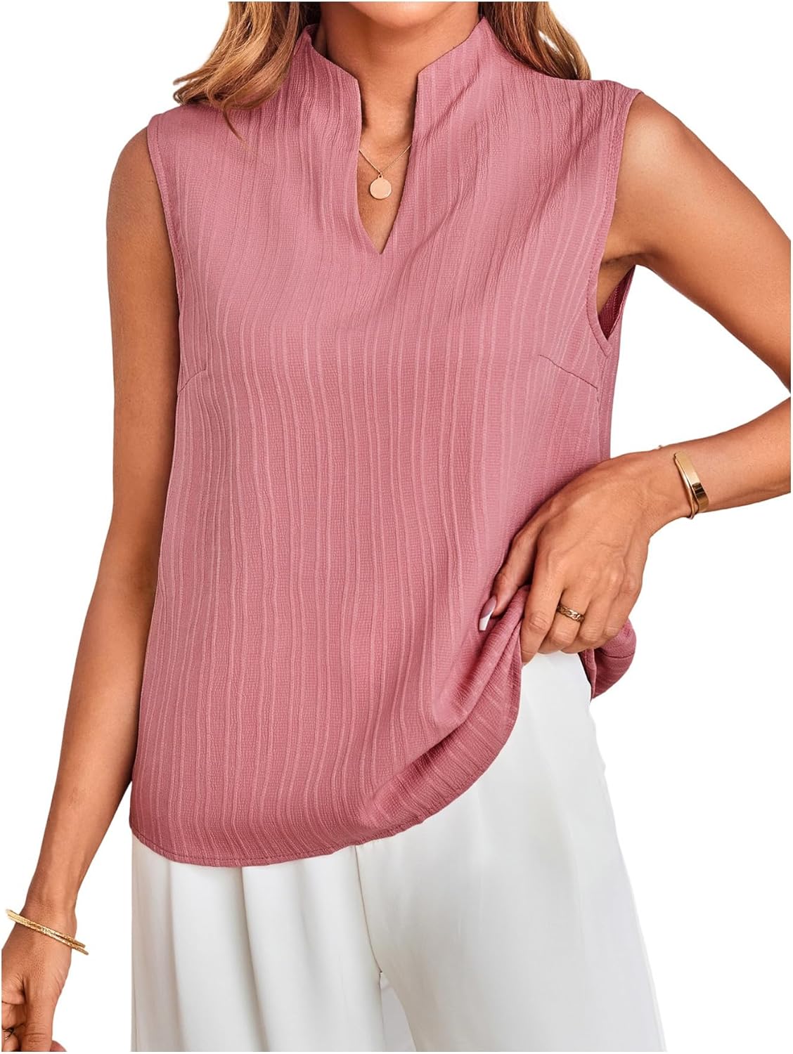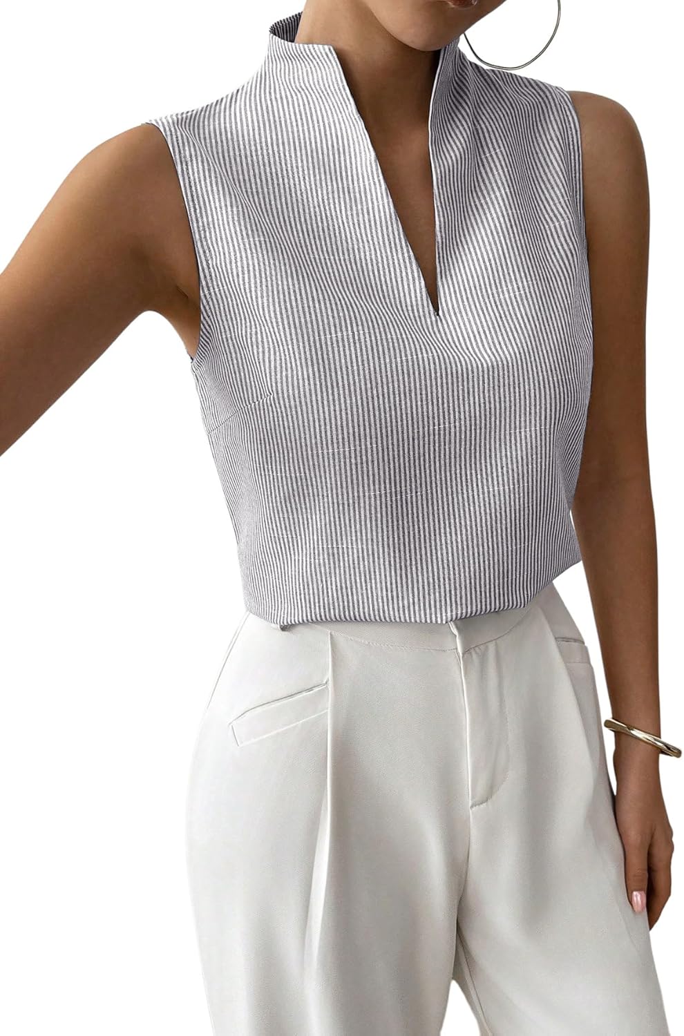 SOLY HUX Women's Work Outfits V Neck Sleeveless Blouses Summer Casual Tank Tops Business Office Dressy Striped Shirts