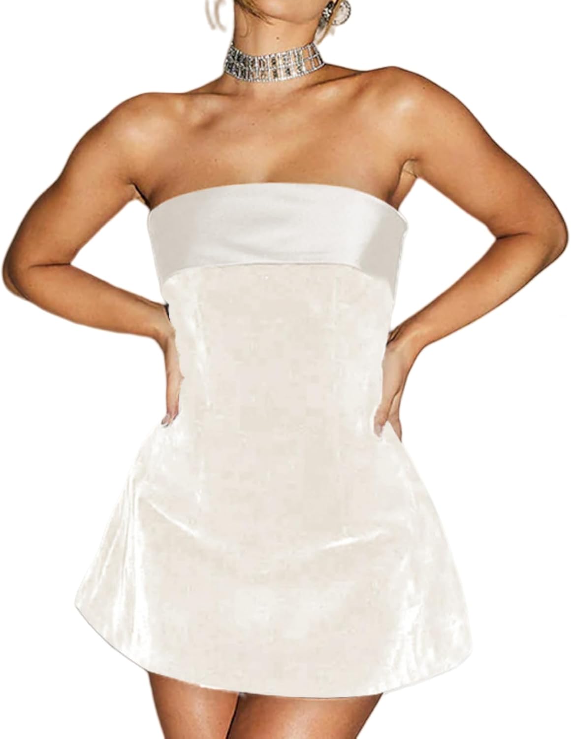ANKOMINA Women's Sexy Strapless Bodycon Mini Dress Velvet Off Shoulder A-Line Tube Top Dress Party Club Dresses
