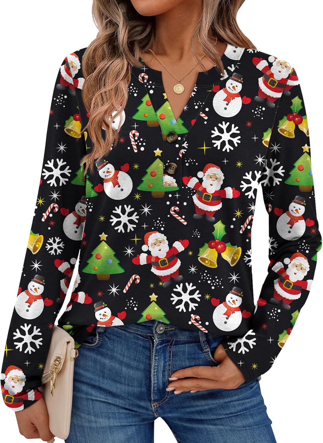 - Feature: long sleeve, button up design, v neck shirts, loose fit dressy casual blouses for women, fall fashion business work tops; Make these henley shirts your versatile staple for an effortless style all year round