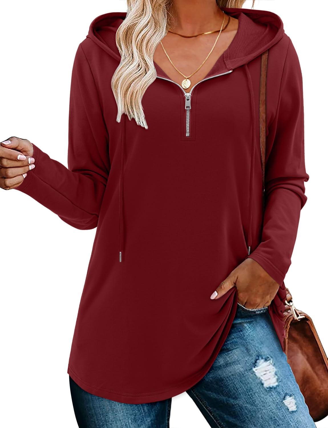 BETTE BOUTIK Womens Quarter Zip Tunic Hoodies Pullover Long Hooded Sweatshirts S-3XL