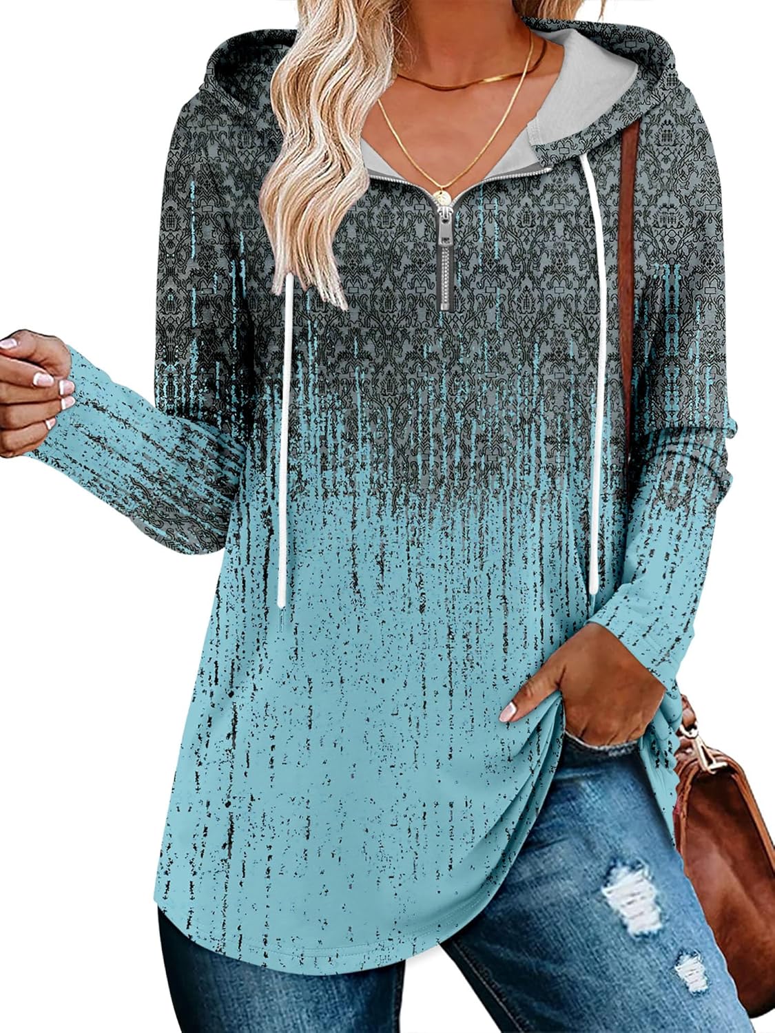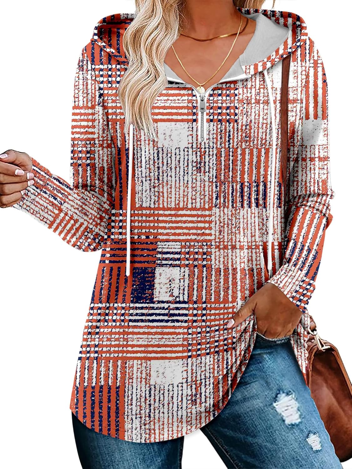 Womens Quarter Zip Tunic Long Hoodies Pullover Hooded Sweatshirts Tops