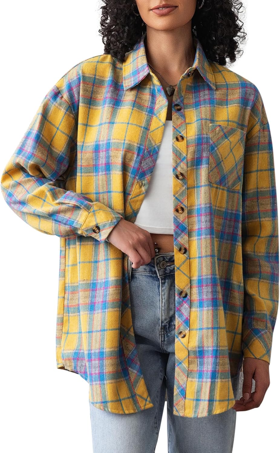 - SIZE TIPS: S=US 4-6 Bust:42.51",Length:30.93,M=US 8-10 Bust:44.23",Length:31.34,L=US 12-14 Bust:46.55",Length:31.74,XL=US 16-18 Bust:49.36",Length:31.92, XXL=US 18-20 Bust:52.36",Length:32.12;Featuring:plaid flannel shirts for women with button down detailing,buffalo plaid check pattern,front pockets,long sleeve shirts,turn down collar,casual,loose,oversized fit,flanneette material,lightweight fabric,blouses for women fashion 2022,fall shirts for women casual
