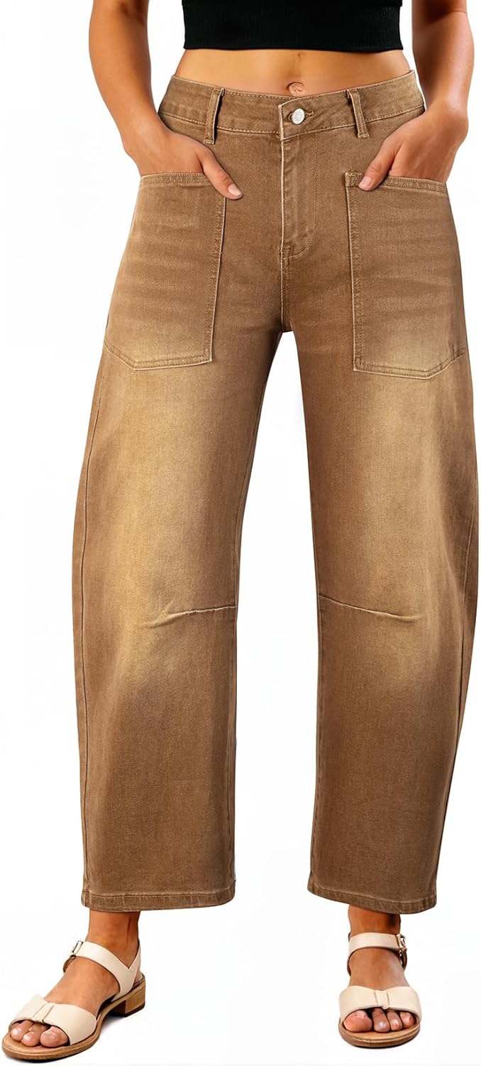 EVALESS Womens Baggy Barrel Jeans High Waisted Wide Leg Boyfriend Denim Ankle Pants