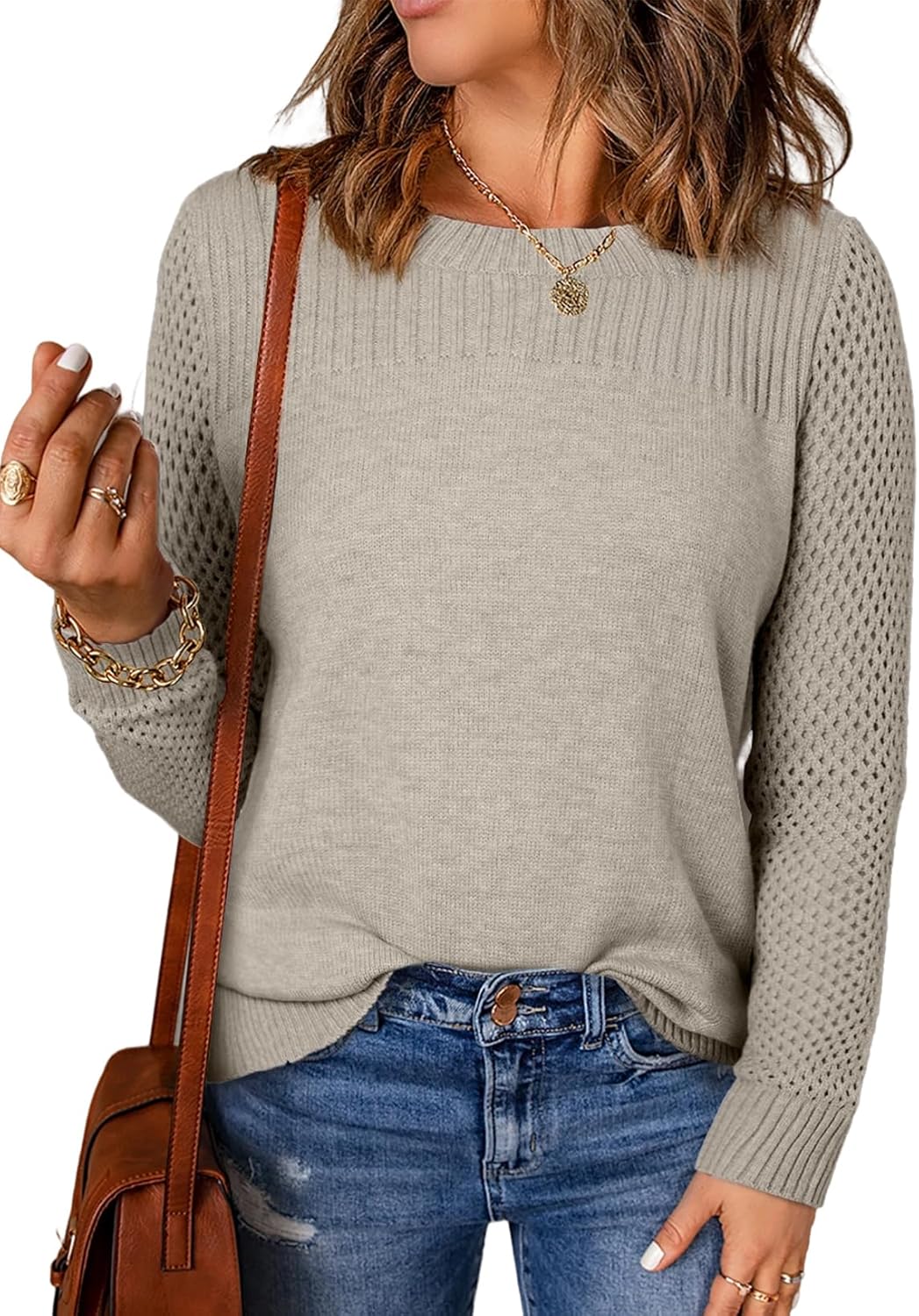 - FEATURES: With a classic round neck/crewneck, cute honeycomb sleeve/long sleeve,hollowing out sleeve providing a flattering and elegant look,plain/solid color,ribbed cuffs and bottom,casual style and loose fit, this chic and trendy oversized fall sweaters will make you stand out from the crowd