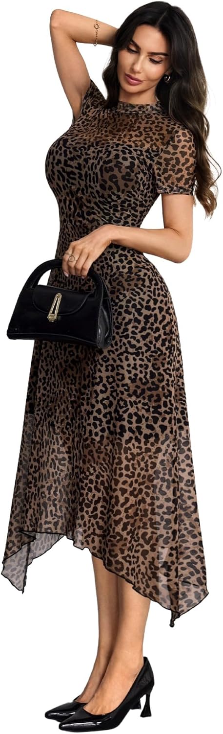 - Features - Short sleeve, round neck, high collar, midi length, slim fit, print dress, mesh spliced double-layered design, waist-cinched, Y2K long dress, cute goth dress, prom dress, sexy dress, romantic dress, wedding guest dress