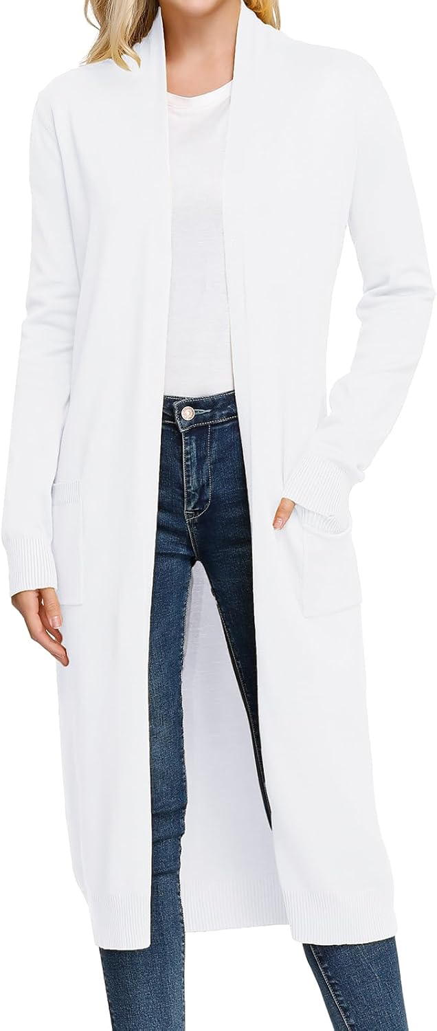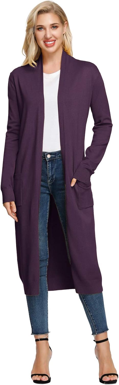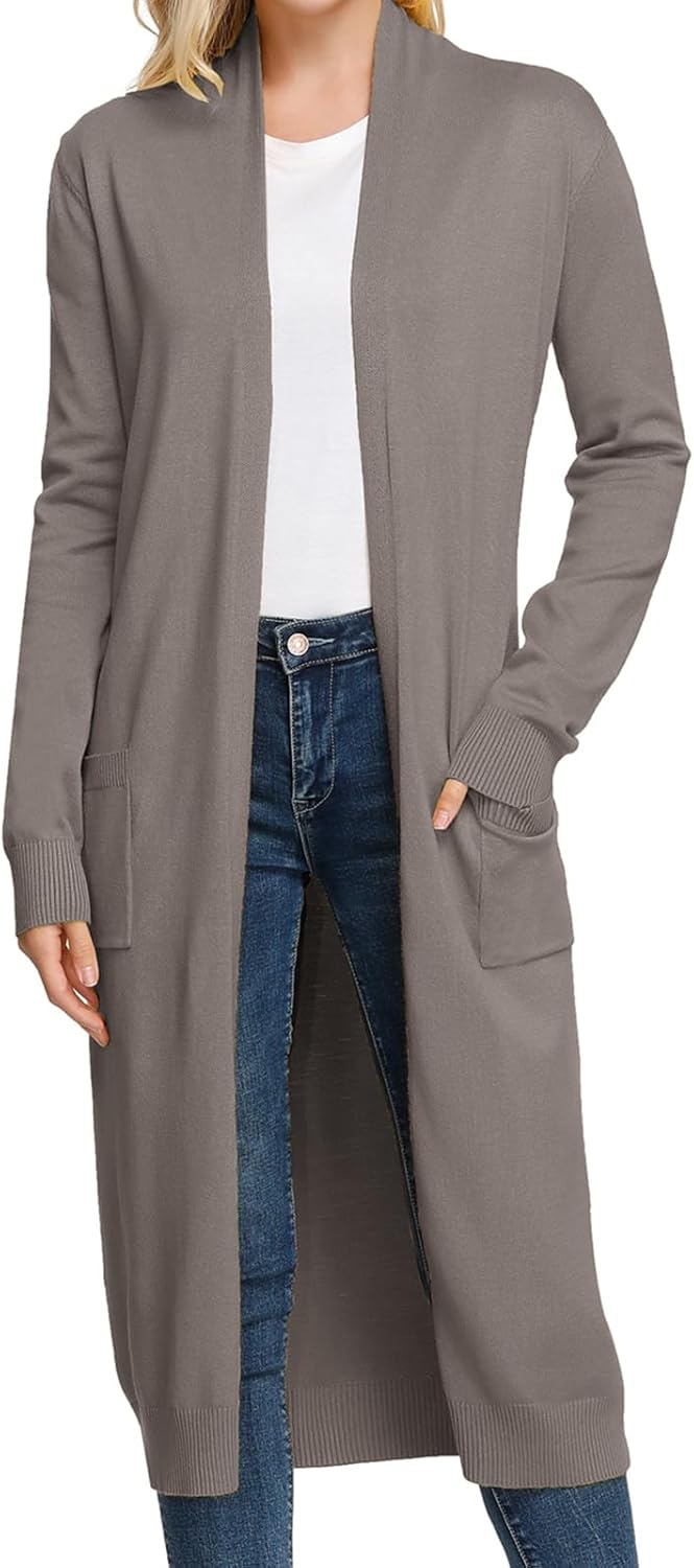 GRACE KARIN Essential Solid Open Front Maxi Long Knitted Cardigan Sweater for Women