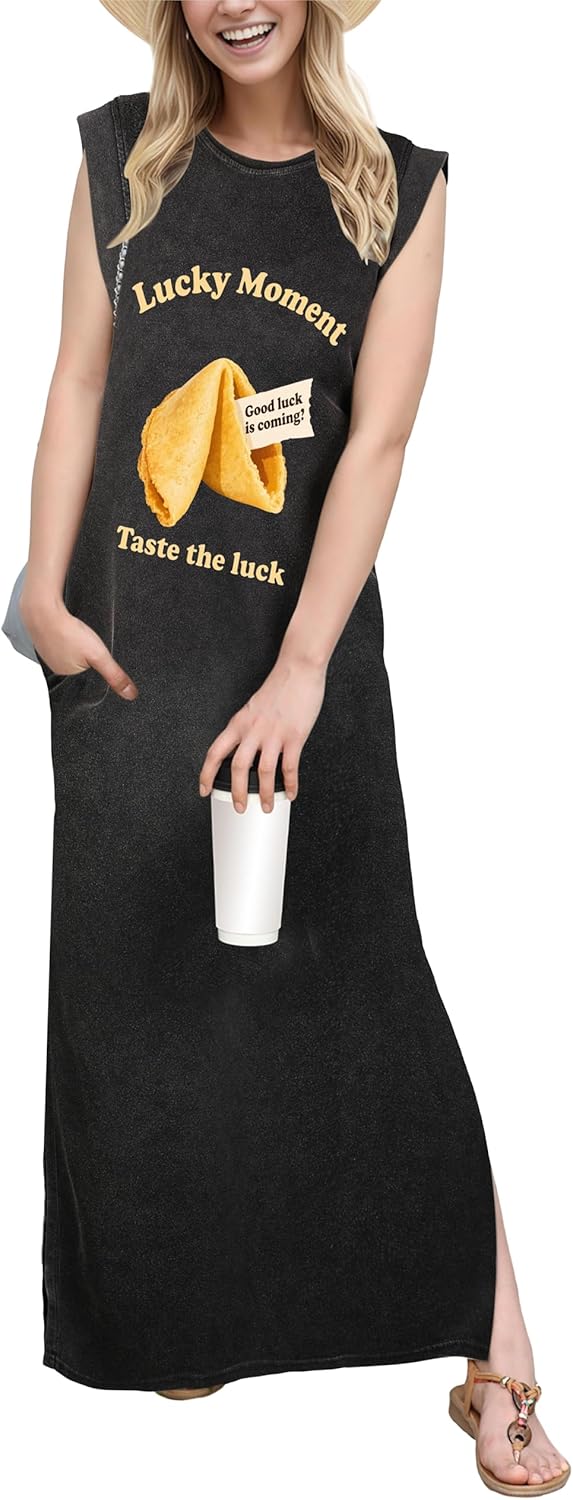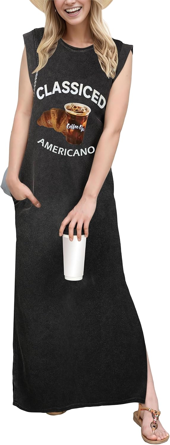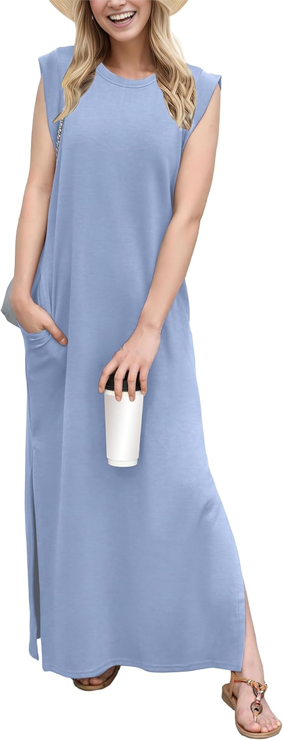 - [Focal Point] Maxi dress: stylish, fashionable, crew neck, sleeveless, ankle length. Complements any shoe whether sneakers or heels.