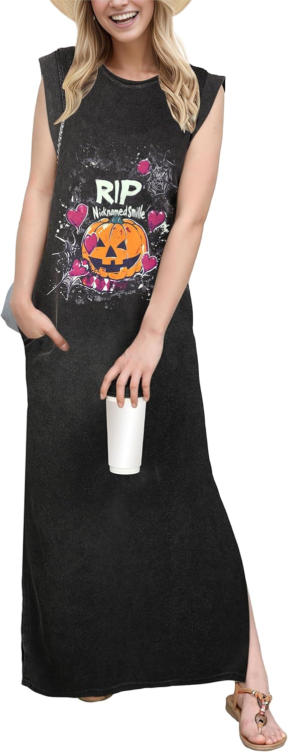 2025 GRECERELLE Women's Year Round Casual Loose Split Maxi Dress with Pockets