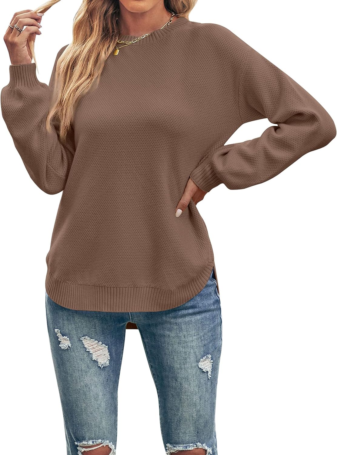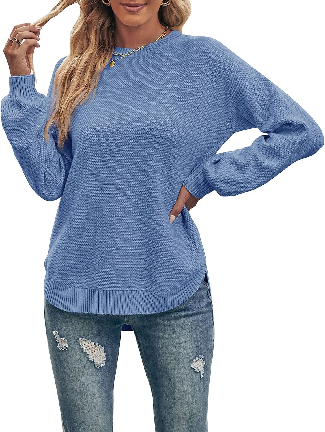 - Features: Crew neck, balloon long sleeve, waffle knit, drop shoulder, modern side split on the curve hemline, basic solid color, ribbed detail at cuffs, neck and hem, casual loose style, trendy sweater for women, sweaters for women 2025