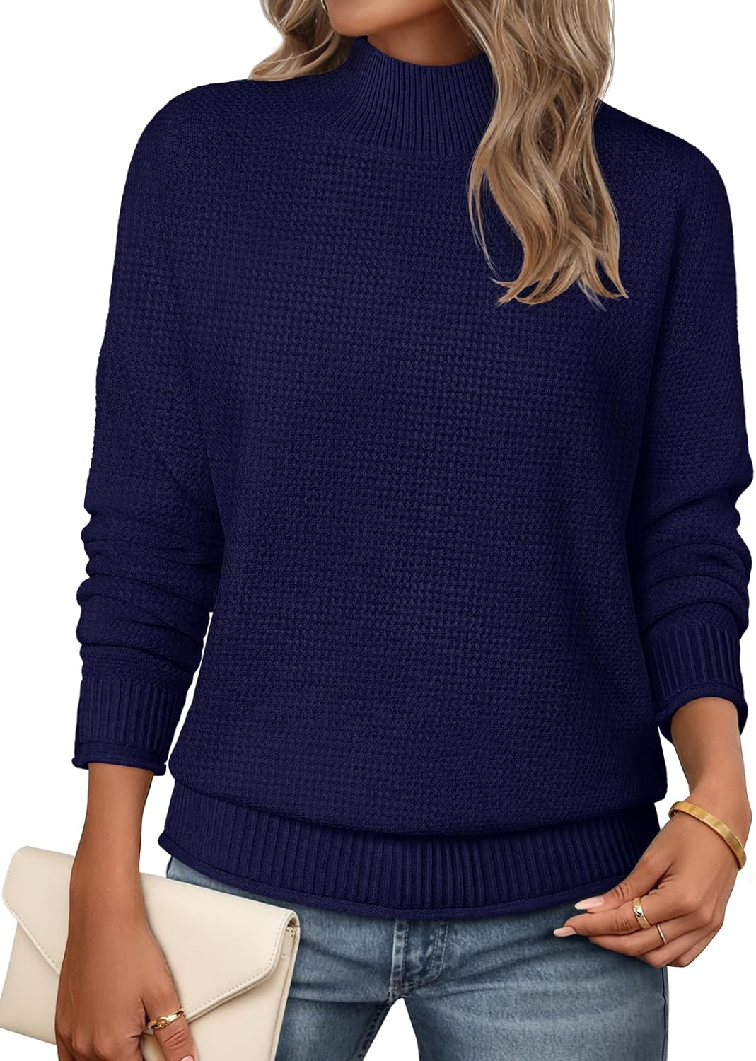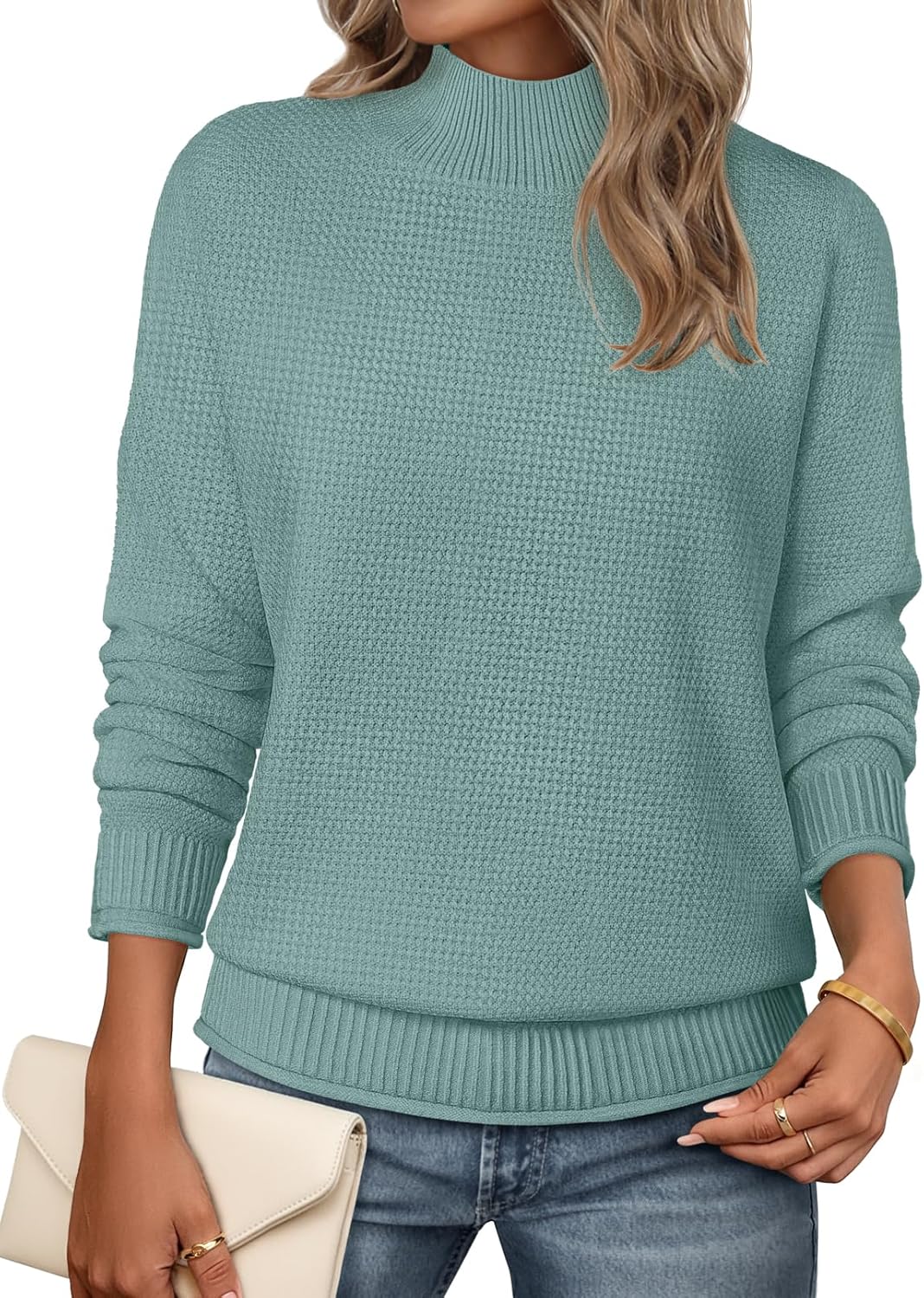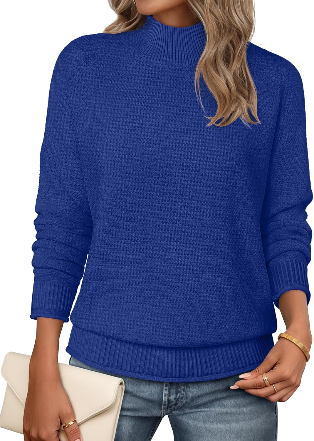 - Unique Design: Women turtleneck sweater, casual loose-fitting, long sleeve, ribbed sleeve cuffs and hem, slightly curled design, simple solid color, trendy drop shoulders, stretchy and soft fabric offer cozy wear experience.