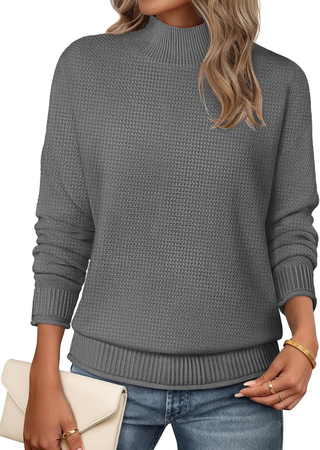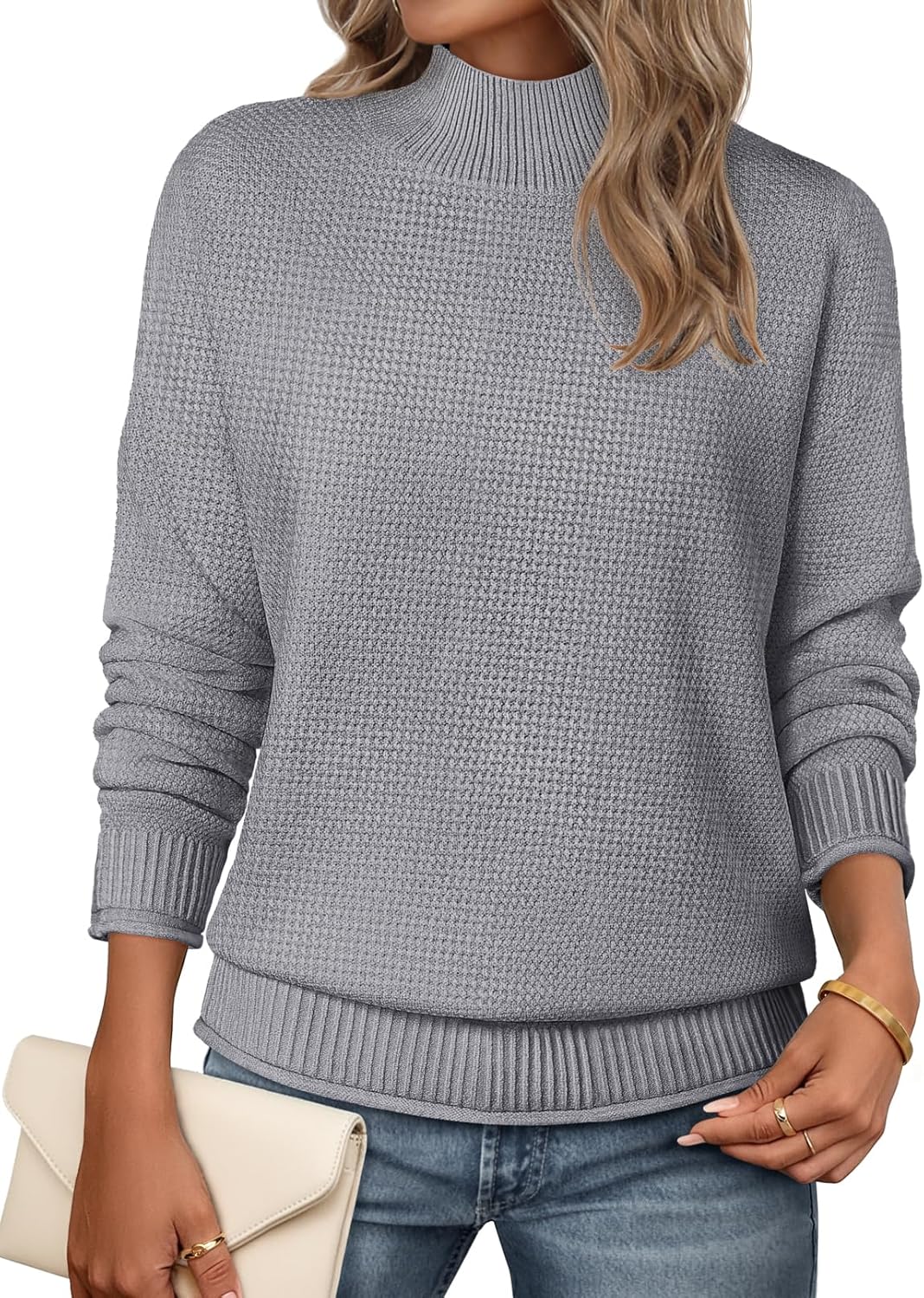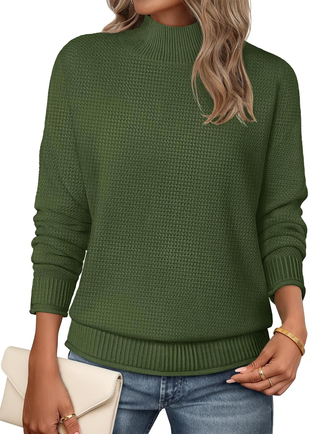 - Unique Design: Women turtleneck sweater, casual loose-fitting, long sleeve, ribbed sleeve cuffs and hem, slightly curled design, simple solid color, trendy drop shoulders, stretchy and soft fabric offer cozy wear experience.