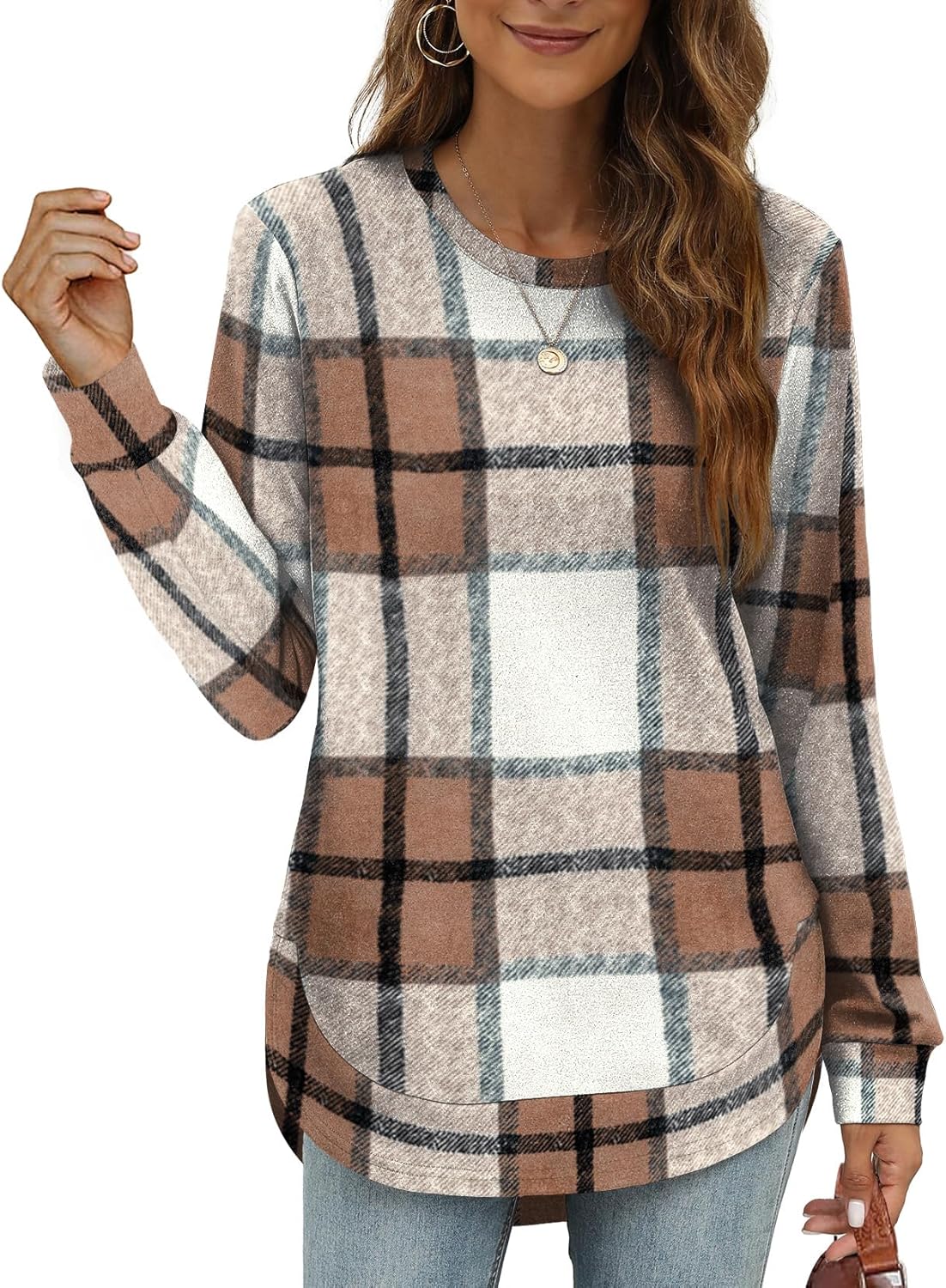 OFEEFAN Womens Sweatshirt Crewneck Long Sleeve Shirts High Low Tops Curved Hem