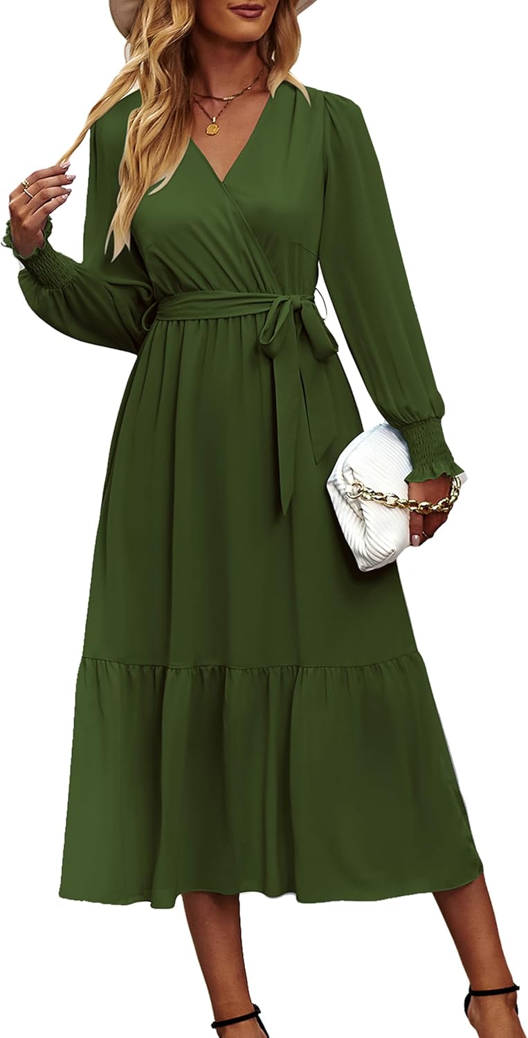 - STYLISH DETAILS: Long Sleeve Maxi Dress For Women; Casual Floral Bohemian Dresses; Cross V Neck Boho Dress; High Waist A-Line Dress; Women Swing Dress With Belt; Ruffle Hem Flowy Dress; Tiered Chiffon Dress For Women; Party Dress For Women; Polka Dot Dress For Women; Fit And Flare Dress For Women; Beach Dress For Women
