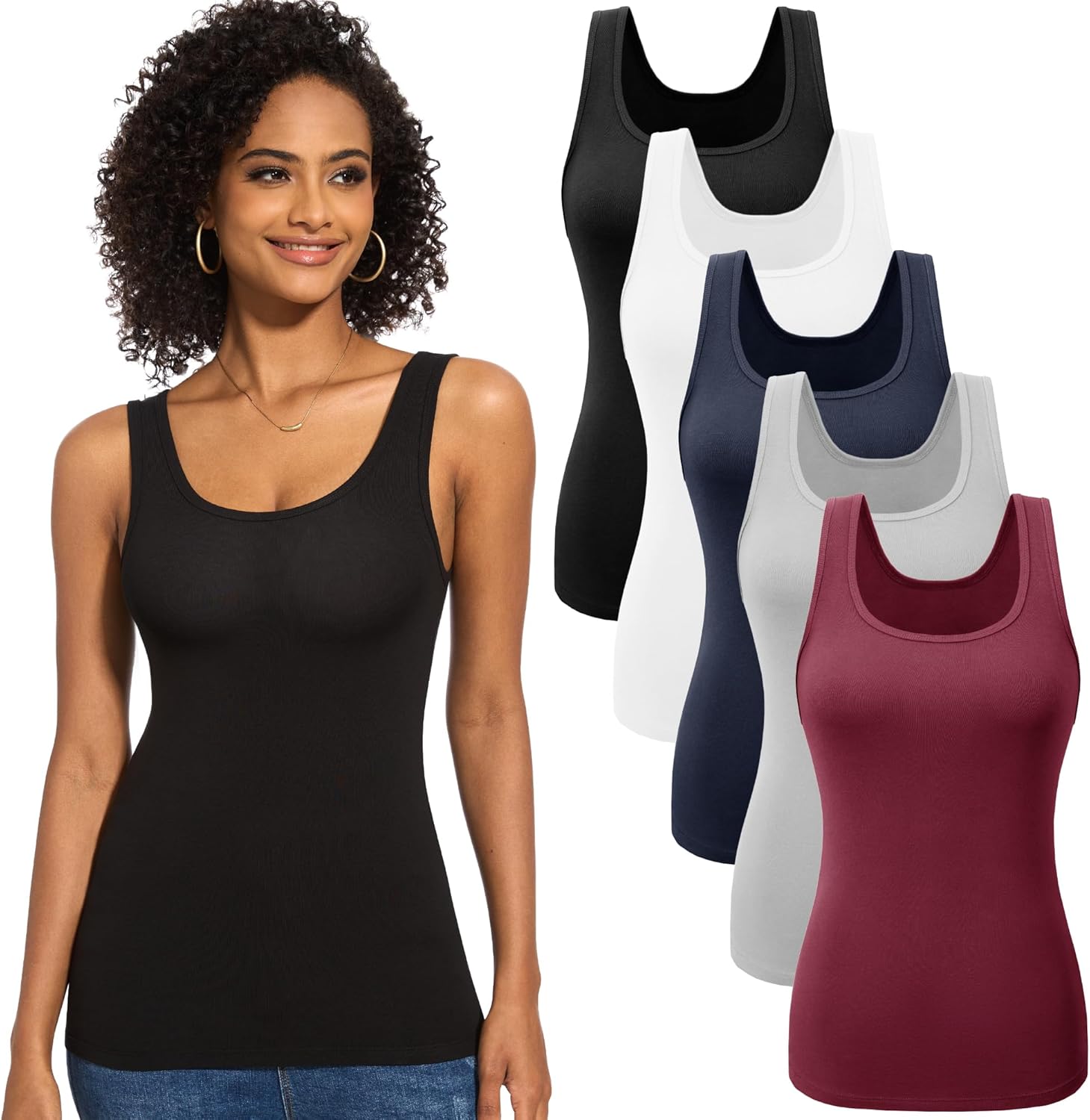 TVKSOM 5 Pack Basic Tank Tops for Women Undershirt Ribbed Sleeveless Casual Basic Tanks Top