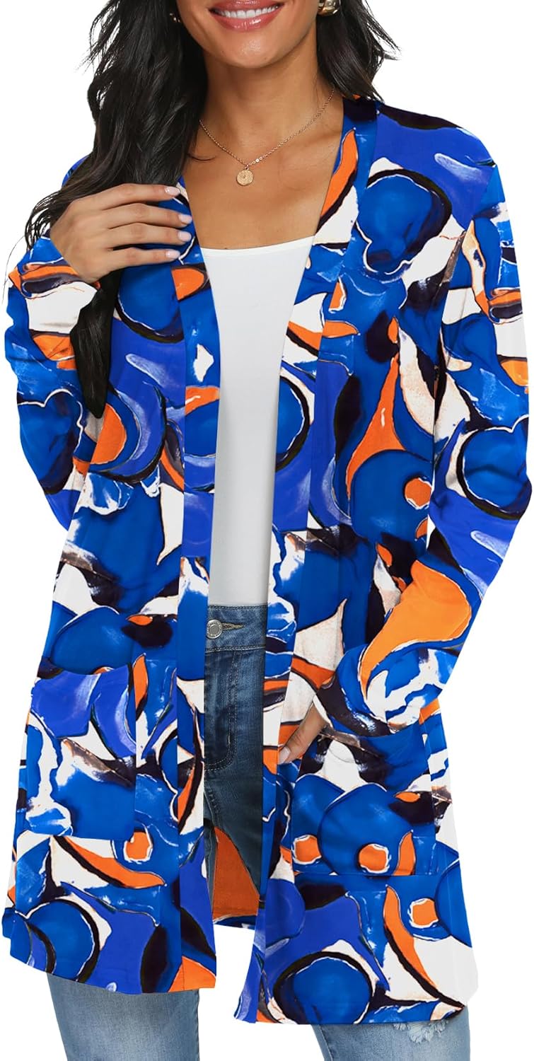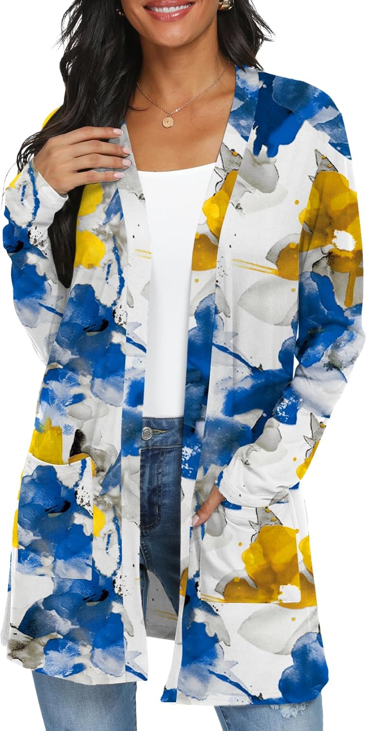 Womens Casual Lightweight with Pocketes Long Sleeve Open Front Cardigan