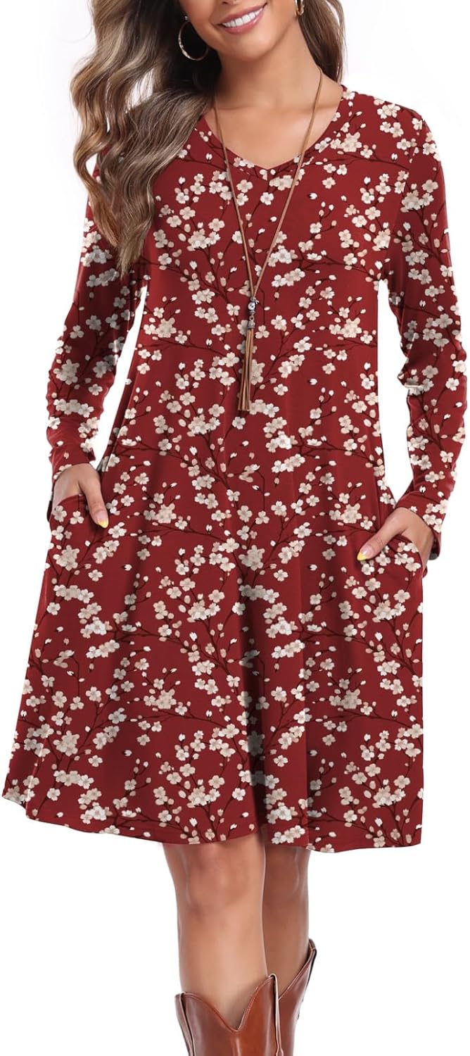 Women's Casual T Shirt Dresses Fall Long Sleeve Swing Dress with Pockets