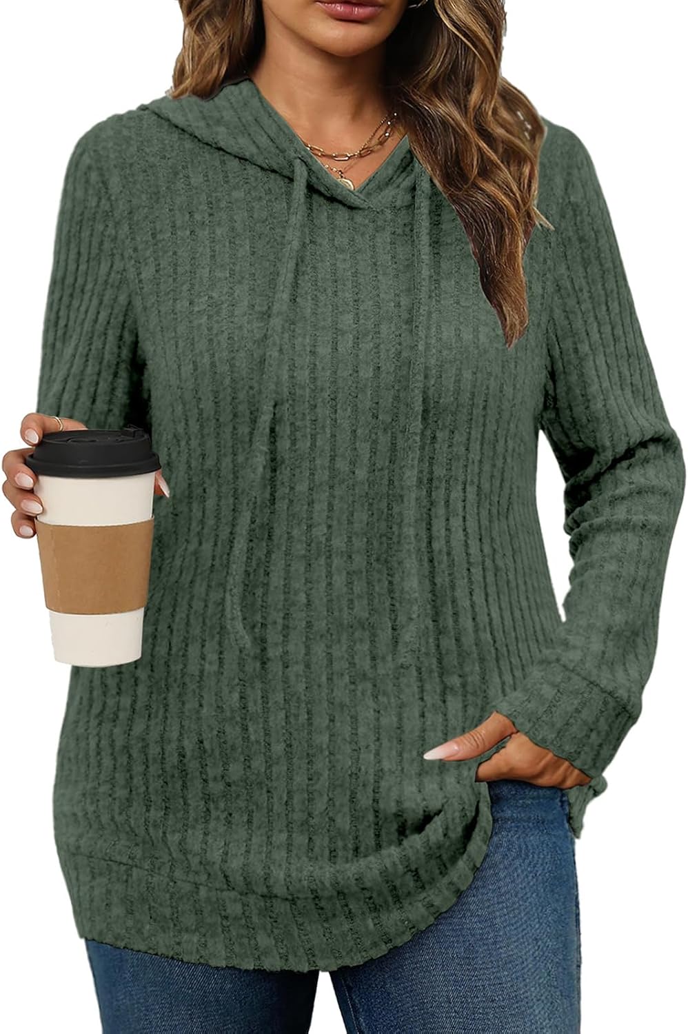 Womens Plus Size Lightweight Ribbed Knit Hoodie Sweaters Casual Long Sleeve Pullover Tops for Fall Winter L-4XL