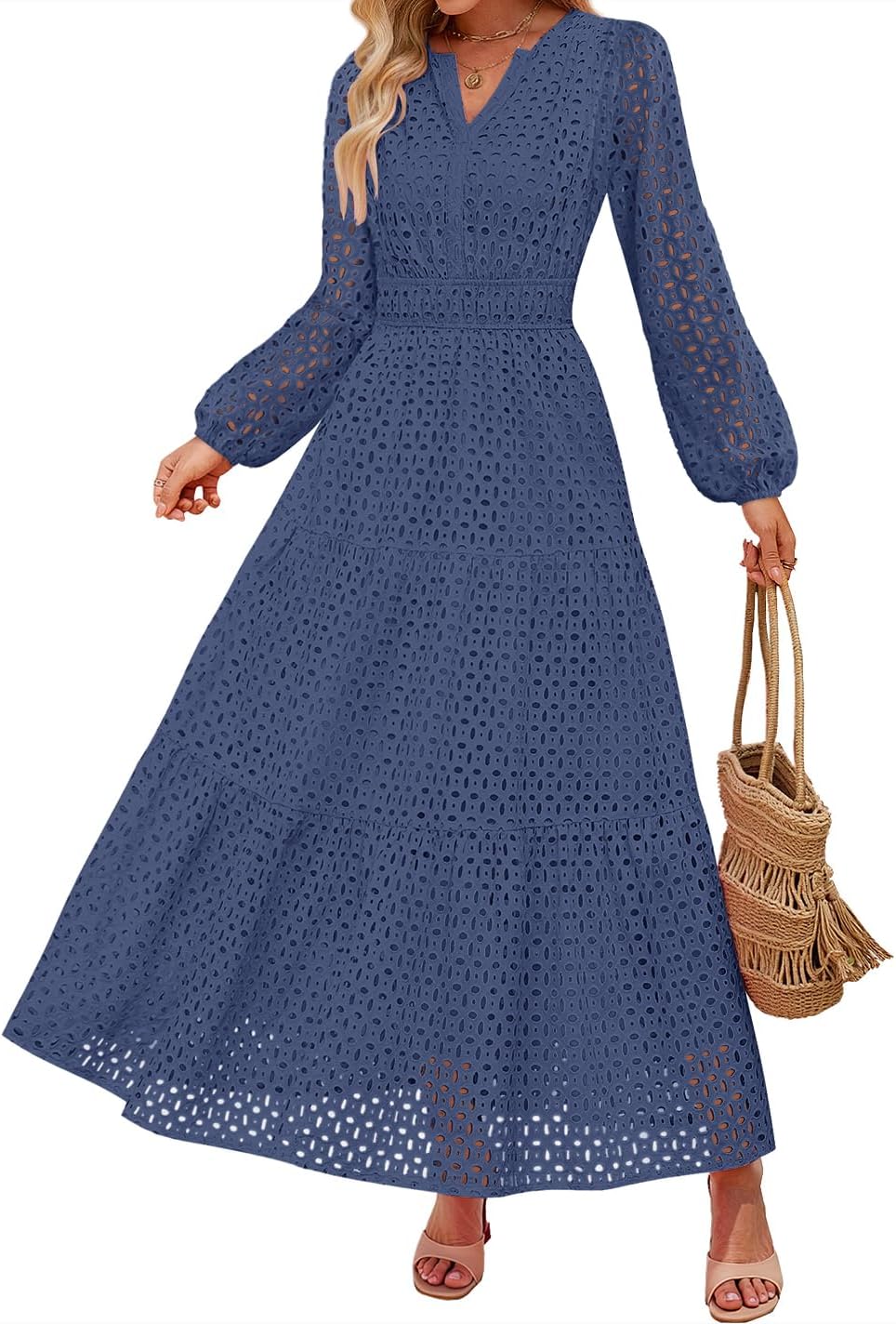- Features: Maxi dresses for women, v neck dress, long sleeve dress, eyelet dress, fall dress, a line dress, long flowy swing dress, empire waist dress, solid color dress, black dresses for women, white dress, pink dress, sky blue dress, green dress, watermelon red dress, brown dress